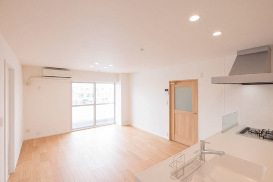木目と白を活かした北欧風のモダンなLDK。白いキッチンが爽やかです。