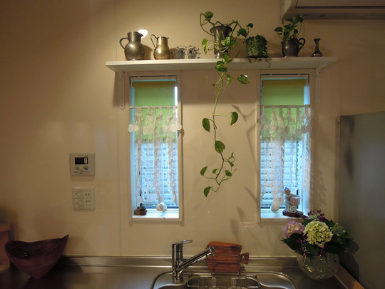 流しの前の窓は通風、採光、防犯、断熱を兼ね備えた、細めの縦すべり出し窓になっています。ハンドルレバーで開閉ができます。