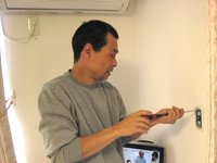 村澤さんは、練馬区出身の職歴30年以上のベテラン職人さんです。もともと小さい頃からオーディオなどの機械をいじるのが好きだったそうです。この仕事についたきっかけは学生時代の家電店でのアルバイト。そこで学んだことから家電の修理や工事に興味がわき、電気工事会社に就職しました。独立して15年以上、思うことは、新築ははじめから作るので問題が少ないものですが、リフォームはひとつひとつ考えて問題解決をするので、現場での記憶が残り勉強になるとのことです。思い出に残る仕事は、東京ドーム建設時に天井の照明の取り付けをしたこと。それは高くて怖かったそうです。意外にも(?)お酒がまったく飲めないので、趣味はパソコン製作やビンテージもののスニーカー集め。休日は靴磨きや秋葉原での部品探しが楽しみだそうです。