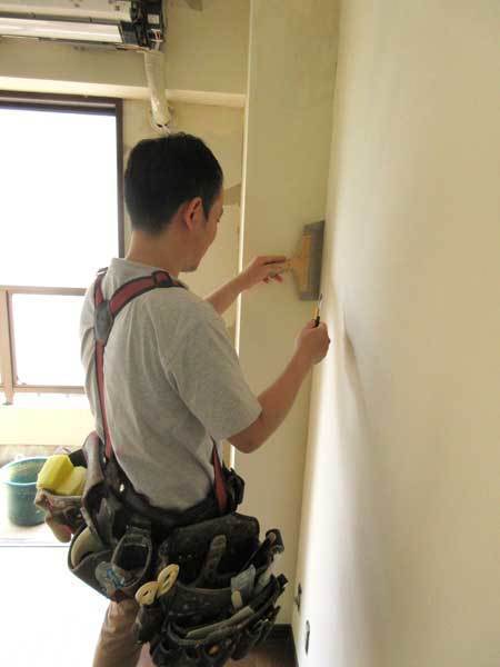 長谷川さんは、三鷹市出身の職歴18年以上の壁のクロスや床材を貼る内装職人さんです。手に職をつけたいと思い、住宅に関心があったので室内をきれいに仕上げることができるクロス貼りの技術を内装会社で修業しました。