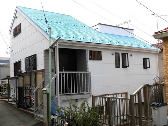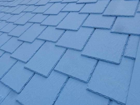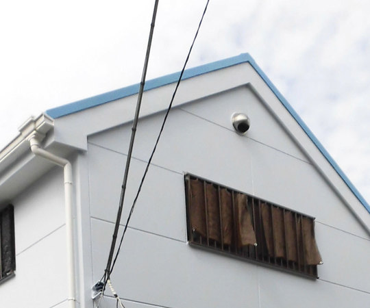 T様邸の3階部分は、天井に小屋裏スペースがない作りで、屋根の温度が直に部屋に伝わり、暑さ寒さが厳しい状況でした。解決方法の一つとして、さらに上から新しい屋根をかぶせる方法がありますが、大工事になり費用もかさみます。そこで最近注目されている宇宙ロケットの塗料から開発された高断熱効果のある塗料「ガイナ」での塗装をご提案しました。費用も抑えられ、塗料でありながらその断熱性は大変優れています。さらに、換気扇を設置し、暑い空気を効率よく排出できるようにしました。