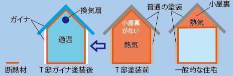ガイナによる塗装は、一般の遮熱塗料などに比べ約1.5倍の費用がかかりますが、耐久性が約20年と一般の塗装の2倍あります。従って通常10年に一度といわれている塗装回数が長期的には半分で済み、さらに光熱費が省エネになるので、コストパフォーマンスに優れた商品です。